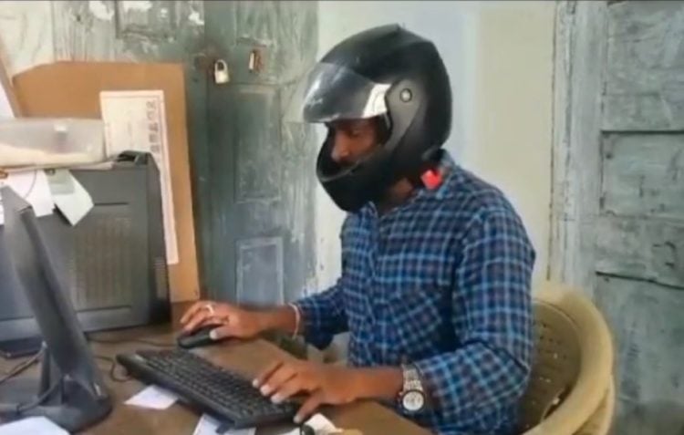 A video of several male employees at the ‘Development Office’ of Jagtial district, in Telangana, wearing motorcycle helmets while working has gone viral on Indian social media. Ironically, the Development Office is tasked with developing the district by giving the internet to villagers and creating infrastructure, but the workplace is in such a terrible state that workers have to protect themselves against falling debris. Local media reported that the staff have been demanding relocation to a safer office building after a colleague nearly suffered brain damage when a cement slab of cement fell from the ceiling.