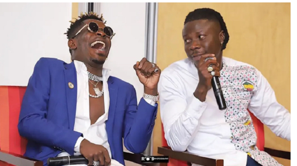 A photo collage of Shatta Wale and Stonebwoy EZRON A photo collage of Shatta Wale and Stonebwoy EZRON