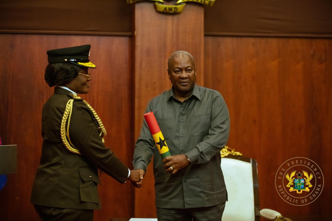 At the event, which took place at the Presidency in Accra, President Mahama also announced the appointments of Deputy Chief Fire Officer (DCFO) Daniella Mawusi Ntow-Sarpong, as Acting Chief Fire Officer of the Ghana National Fire Service and Deputy Controller of Immigration (DCI) Samuel Basentale Amadu, as Acting Comptroller-General of the Ghana Immigration Service.