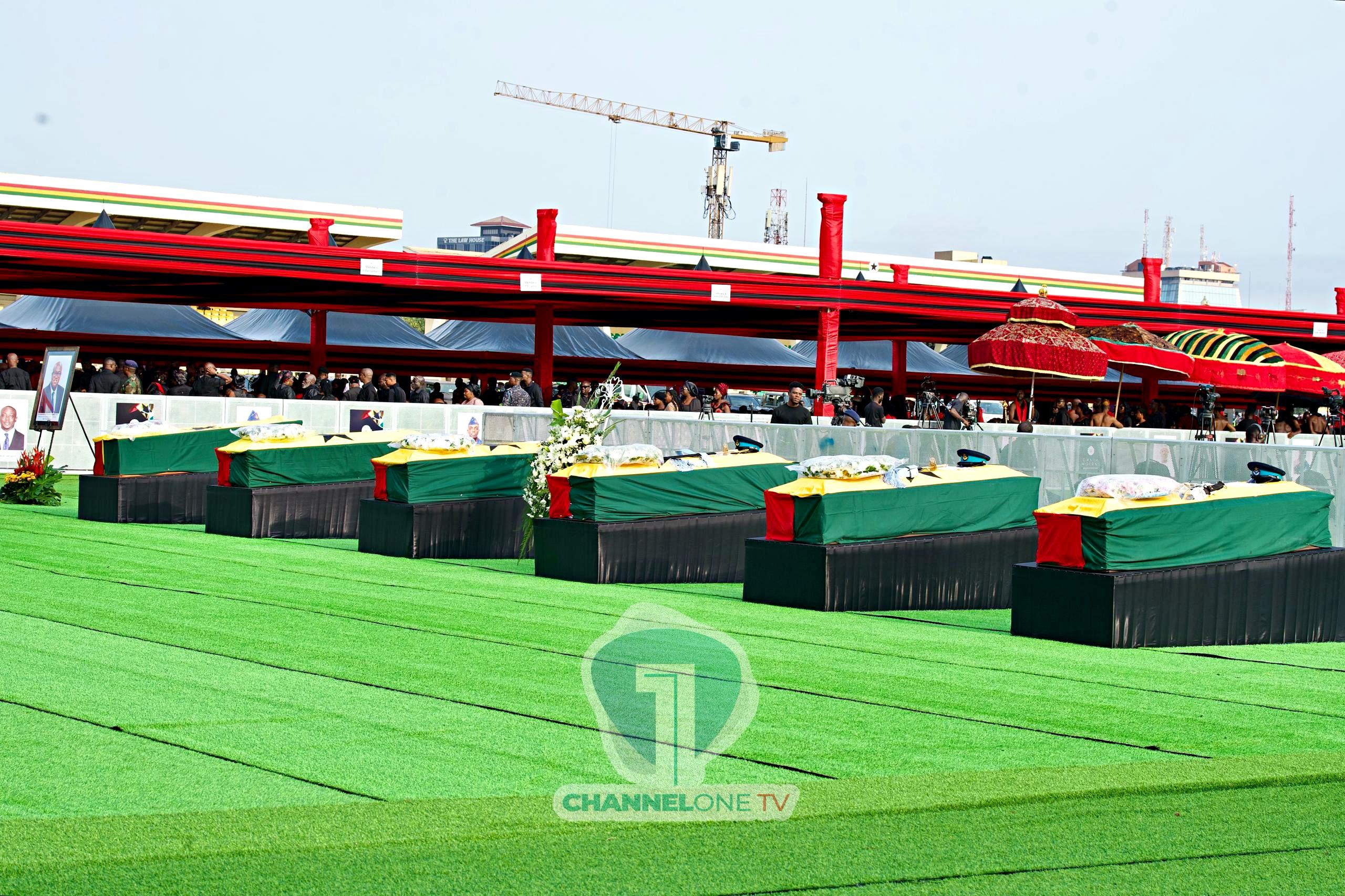 The six laid to rest on August 15 were: Defence Minister Dr. Edward Omane Boamah, Samuel Aboagye, National Democratic Congress (NDC) Vice Chairman Dr. Samuel Sarpong, Squadron Leader Peter Bafemi Anala, Flying Officer Manin Twum-Ampadu, and Sergeant Ernest Addo Mensah.