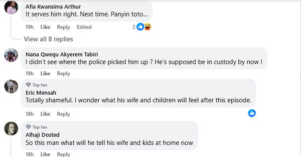 “Totally shameful. I wonder what his wife and children will feel after this episode,” Eric Mensah also wrote.