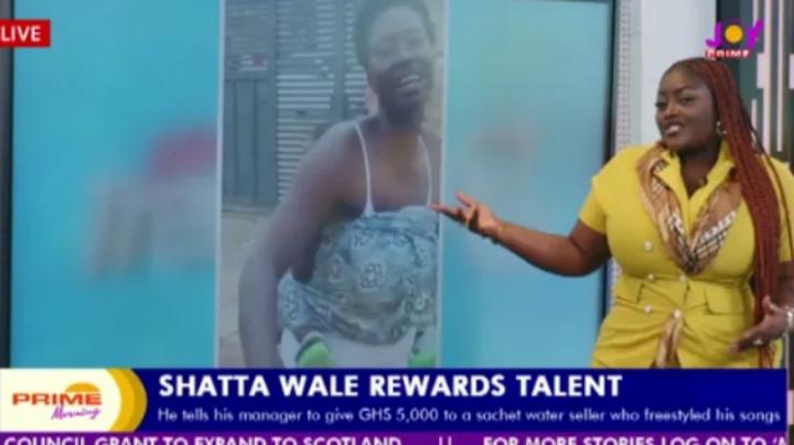 “When Shatta Wale saw the video, he was moved by how this young man, struggling to make ends meet, could still find joy in his songs. He immediately called his manager, Sammy Flex, and instructed him to find the guy and give him GHS 5,000,” Asieduwaa Akumia disclosed on Joy Prime’s entertainment segment.