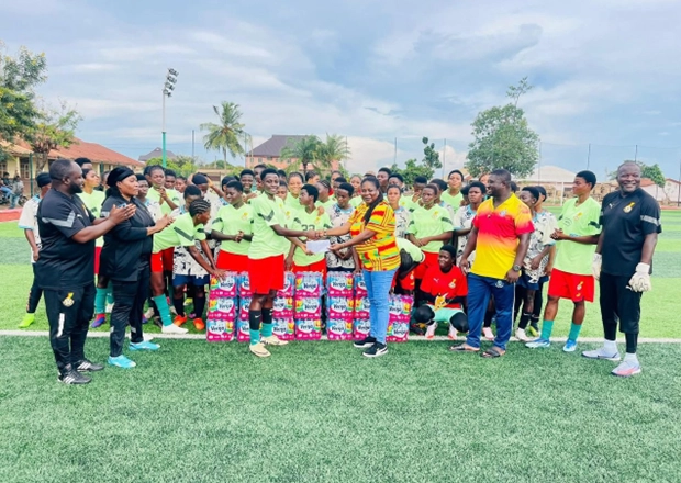Members of the Black Queens Management Committee, led by ASP Naomi Fainusatu Abdulai, have extended their support to the Black Maidens, Ghana’s U-17 women’s national team, with a donation of bottled water and an undisclosed amount of cash during their training camp in Sunyani.
