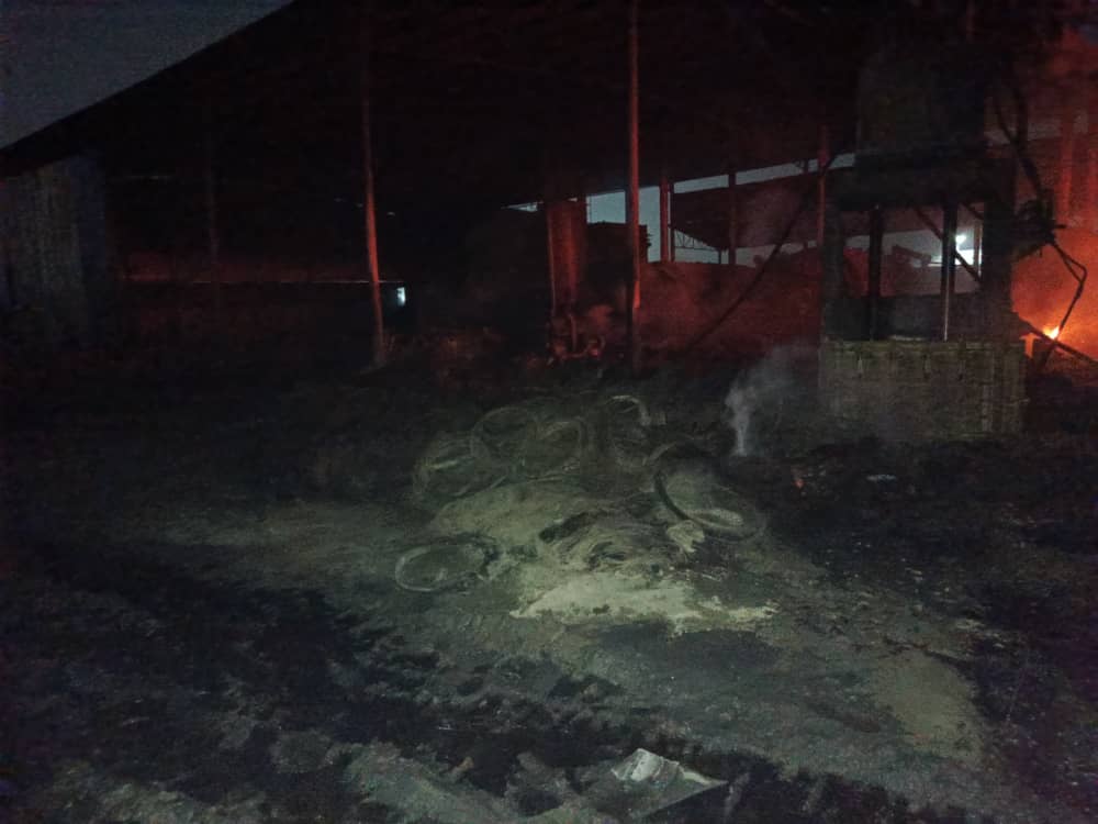 The fire, which involved industrial ovens used for extracting pyrolysis oil from tyres, broke out around 11:04 a.m. A swift response from GNFS saw four fire tenders from the Gbetsile, Devtraco, Tema Metro, and Motorway Fire Stations arriving at the scene to prevent the blaze from spreading.