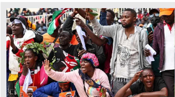 They chanted “Raila usilale, bado mapambano”, a popular Swahili political slogan, which translates as “Raila, don’t sleep, the struggle is not over”.