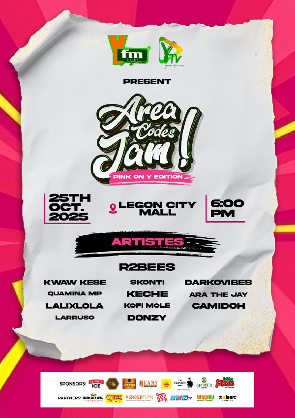 Accra is about to turn pink and loud as Ghana’s #1 youth and urban radio station, YFM, storms the Legon City Mall this Saturday, October 25, with the 2025 edition of Ghanas longest and biggest community focused concert ; Area Codes Jam.