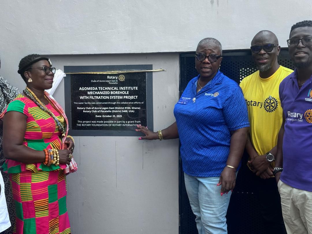 The Rotary Club of Accra Legon East, in partnership with the Rotary Club of Pocatello (USA), formally commissioned three mechanised boreholes fitted with filtration systems at Agomeda and Somanya, delivering immediate improvements in water access for students and residents.