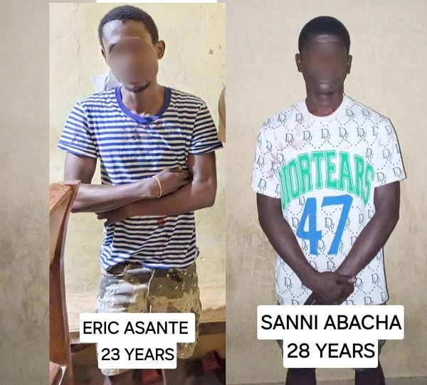 According to them, the suspects Sani Abacha, 28, and Asante Eric, 23 attacked two young men and stole a tricycle, popularly known as Aboboyaa, on Sunday, October 19, 2025.
