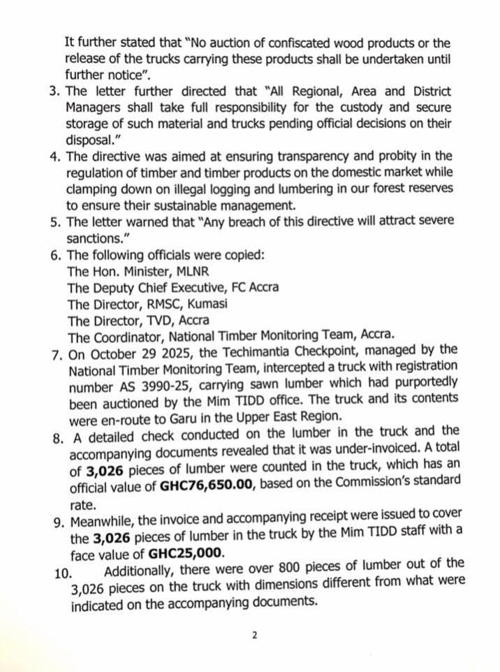 The clarification comes in the wake of a directive issued on April 17, 2025, by the Chief Executive of the Forestry Commission to curb reported collusion between some officers and timber cartels involved in the processing and transportation of illegally harvested timber.