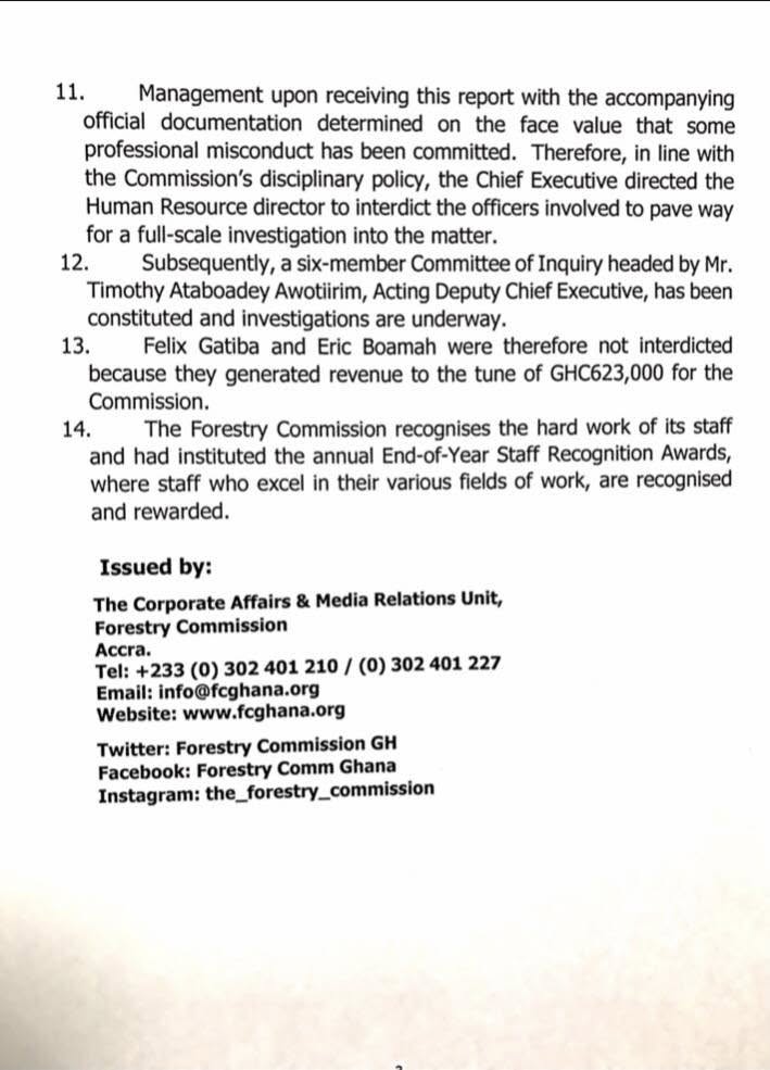 The statement confirmed that Felix Gatiba and Eric Boamah were not interdicted and emphasised that the reported revenue was duly generated for the Commission.
