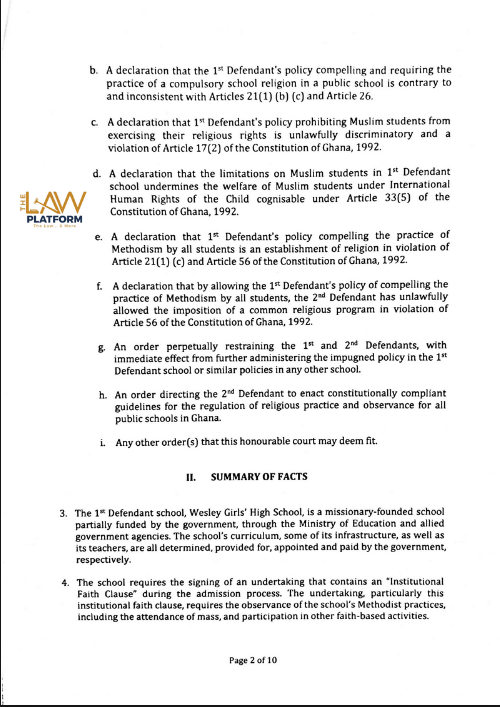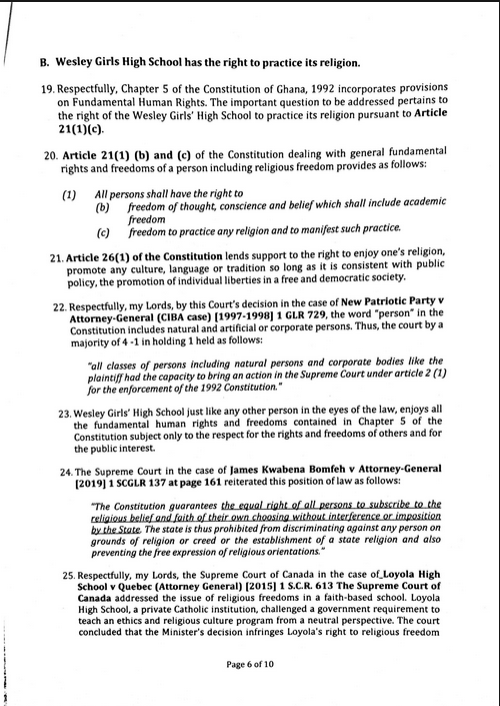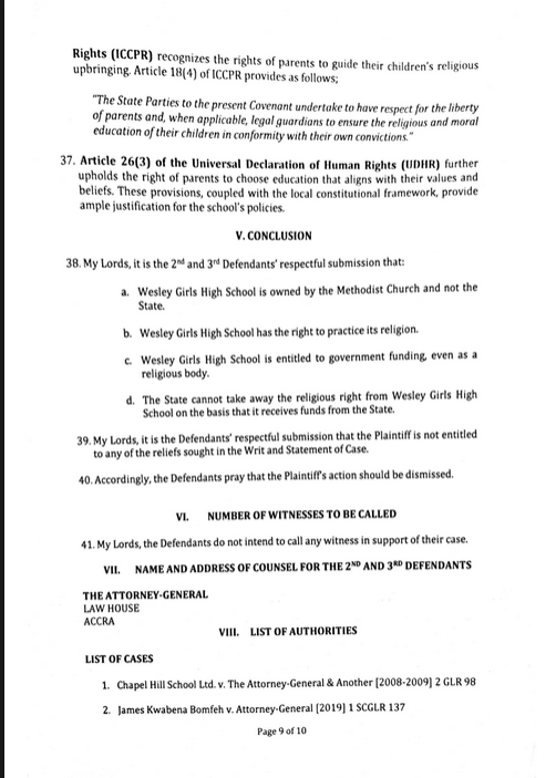 In his response, the Attorney General rejected the claims, saying that Wesley Girls’ SHS, which is run by the Methodist Church of Ghana, has the right to uphold its Methodist values.