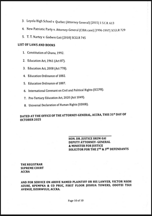 Dr Dominic Ayine, Attorney General and Minister for Justice has responded to a legal challenge over religious rules at Wesley Girls’ Senior High School (SHS).