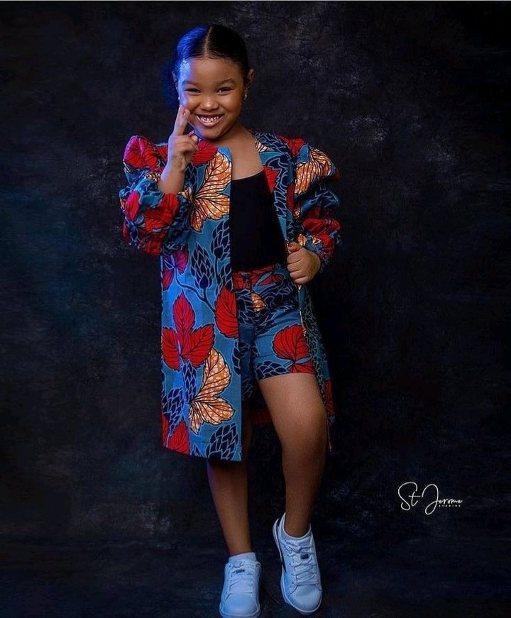 For girls, ruffled Ankara shorts have become particularly popular. The playful designs often include bright floral patterns and elastic waistbands, offering both comfort and style. Accessories such as headbands or hair ties made from matching Ankara fabric add a fun touch to the overall look. Boys are not left behind, with elastic-waist Ankara shorts in various prints providing a practical and stylish choice for everyday wear. These shorts are perfect for school, playdates, and family outings.