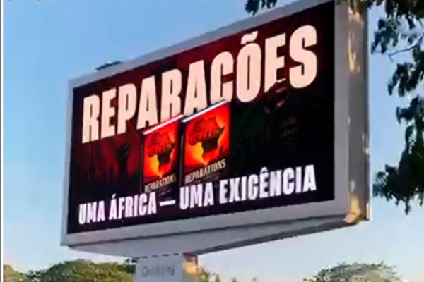 Across the city — on major highways, along the routes of official motorcades, next to the hotel housing the delegations, and right by the conference centre — giant digital billboards suddenly lit up with a stark black-red-gold design bearing the words: “Reparations – One Africa – One Demand.”