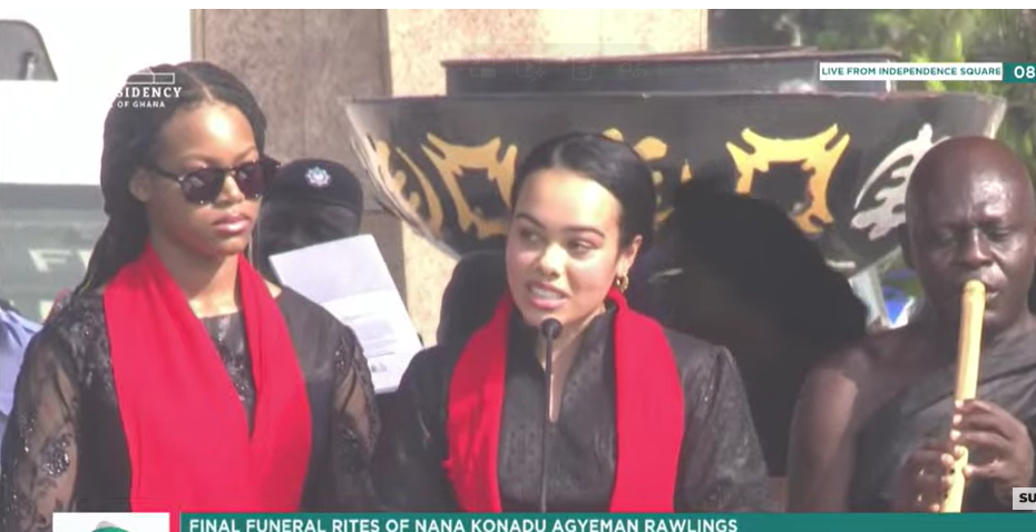 The grandchildren of the late former First Lady, Nana Konadu Agyeman-Rawlings, delivered an emotional tribute in her honour during her funeral rites, celebrating her enduring influence on their lives.
