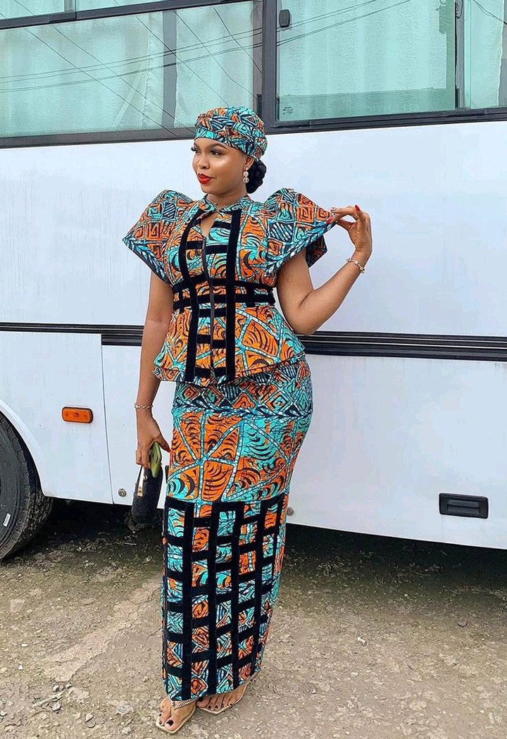 Another standout trend is the Ankara two-piece set. From high-waisted skirts to wide-leg trousers paired with chic crop tops or peplum blouses, these matching sets exude elegance and versatility. They can be styled up or down depending on the occasion, making them a favorite for women who love both comfort and style.