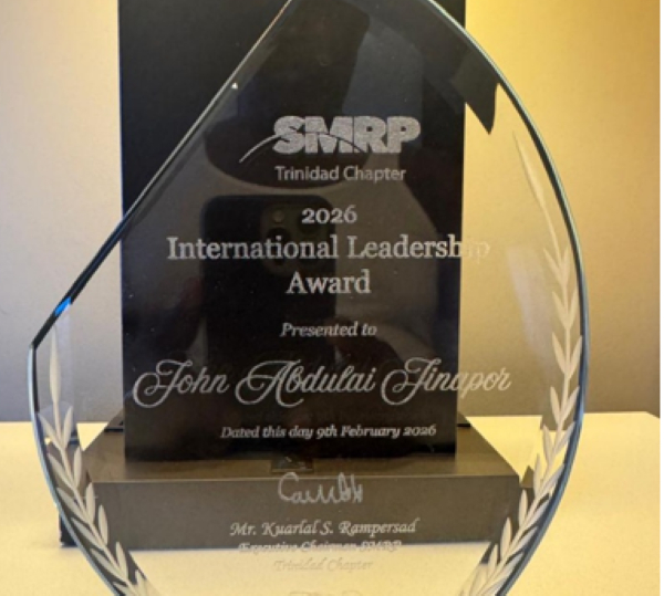 The award was presented by SMRP Executive Chairman Kuarial Rampersad