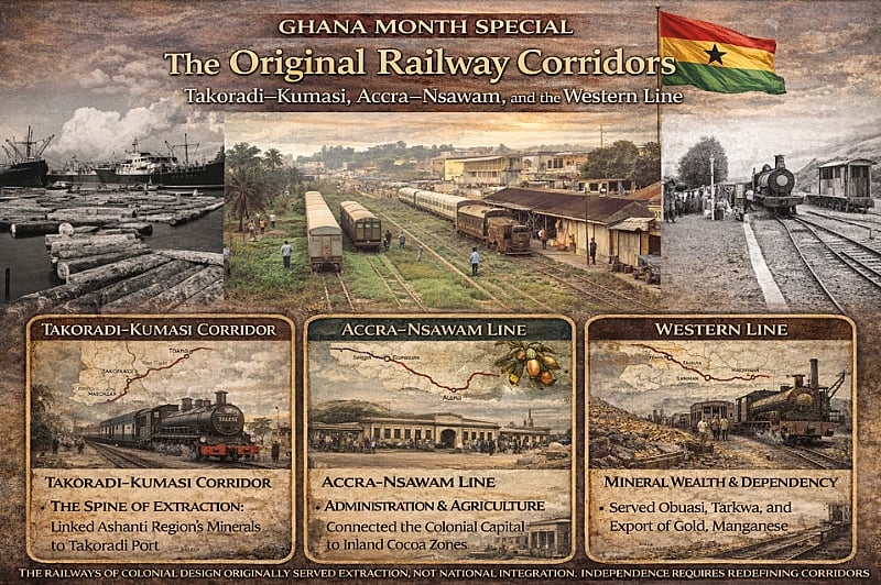 The original railway corridors were not mistakes. They were rational within their context. But Ghana in 2026 is not the Gold Coast of 1908. Ghana Month should not only celebrate independence. It should challenge us to redefine the purpose. The Takoradi–Kumasi line carried cocoa and gold. The Accra–Nsawam line supported administration and agriculture. The Western Line powered mineral exports.