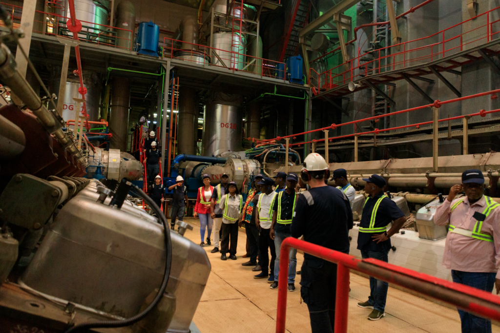 During the visit, journalists were taken through key operational processes of the powership—from fuel intake and electricity generation to transmission into the national grid.