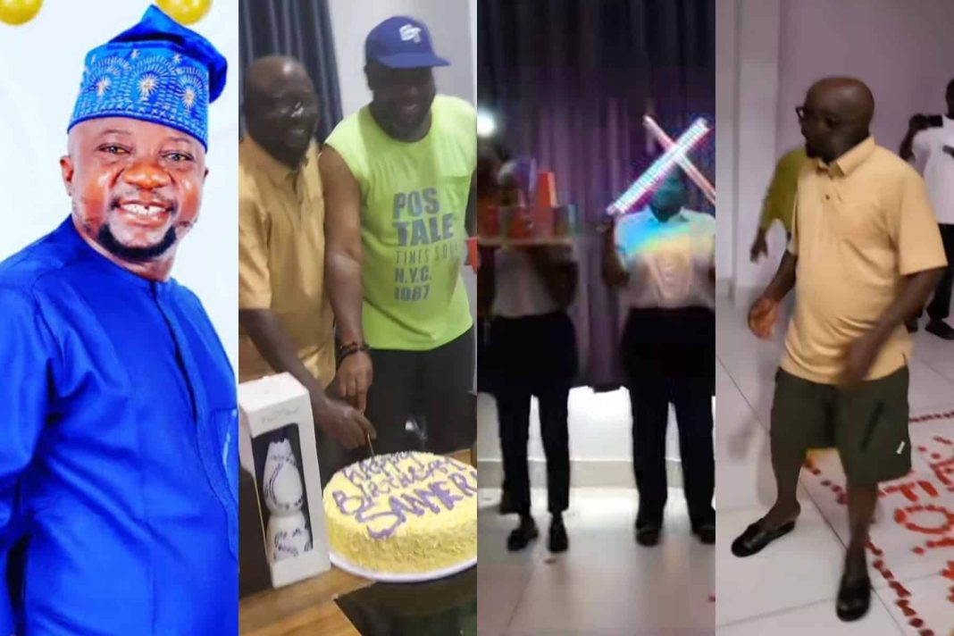 The comic actor, who turned a day older a few days back, was treated to a surprise birthday party by his colleagues. In attendance at the surprise party were Tijani Adebayo, Eniola Ajao, Toyosi Adesanya, Femi Branch and more.