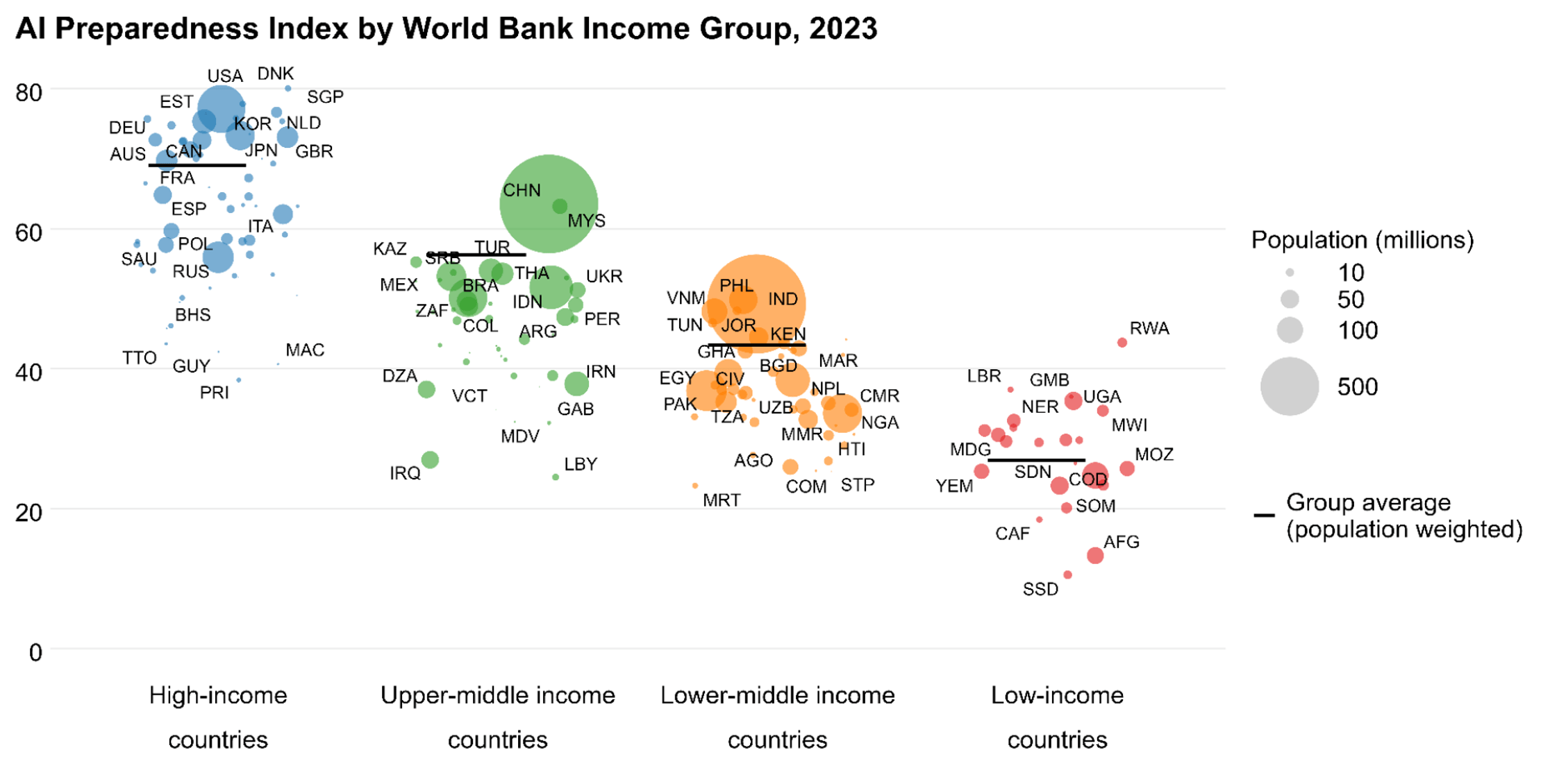 These gaps mean that while some countries are rapidly building domestic AI ecosystems, many are not yet able to participate in the AI economy at all.