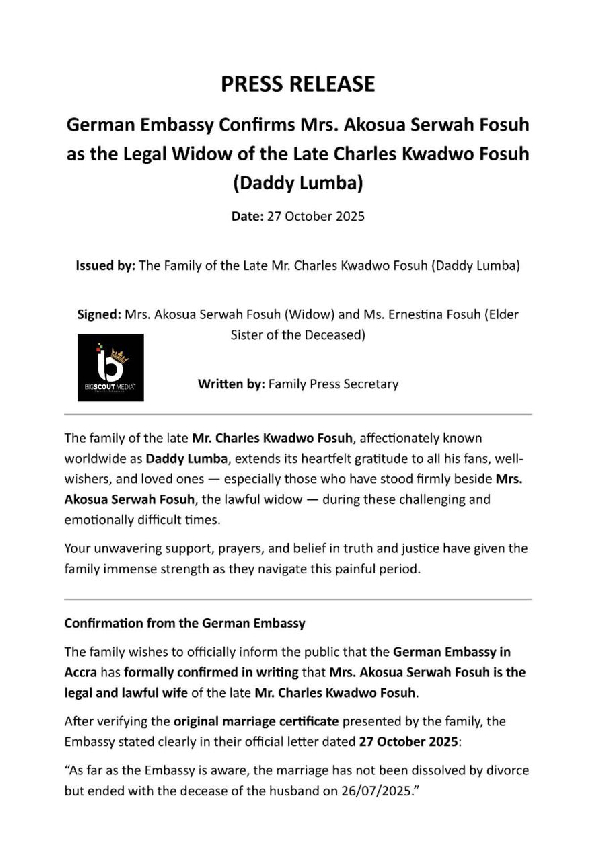 A well-known person like Charles Kwadwo Fosu (Daddy Lumba) passing away can spark controversy on both an emotional and legal level. Conflicting reports of marriage and fights over his fortune have surfaced since his purported death. Important issues regarding the legality of marriage, succession rights, and property inheritance under Ghanaian law are brought up by the dispute between Akosua Serwah Fosu, who asserts that she is his legitimate wife, and the Fosu Royal Family of Nsuta, along with Priscilla Ofori (Odo Broni).