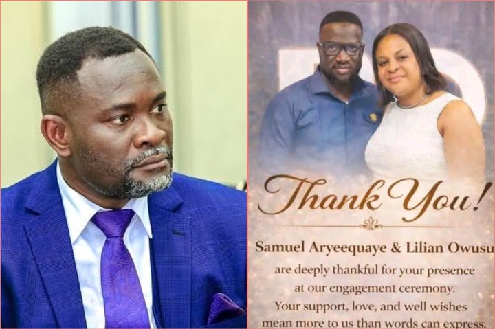 The event was marked by a private engagement ceremony, as confirmed by a souvenir photo card obtained by the media. The card identifies the couple as Mr. Samuel Aryeequaye and Mrs. Lilian Owusu, now presumably to be known as Mrs. Lilian Aryeequaye.
