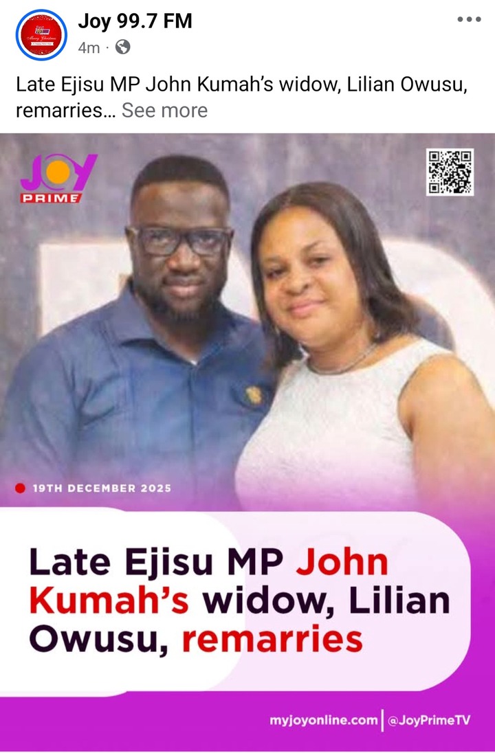 Mrs. Lilian Owusu, widow of the late Deputy Finance Minister and Member of Parliament for Ejisu, John Kumah, has entered into a new marriage. The ceremony took place approximately one year after the tragic passing of her former husband in March 2023.