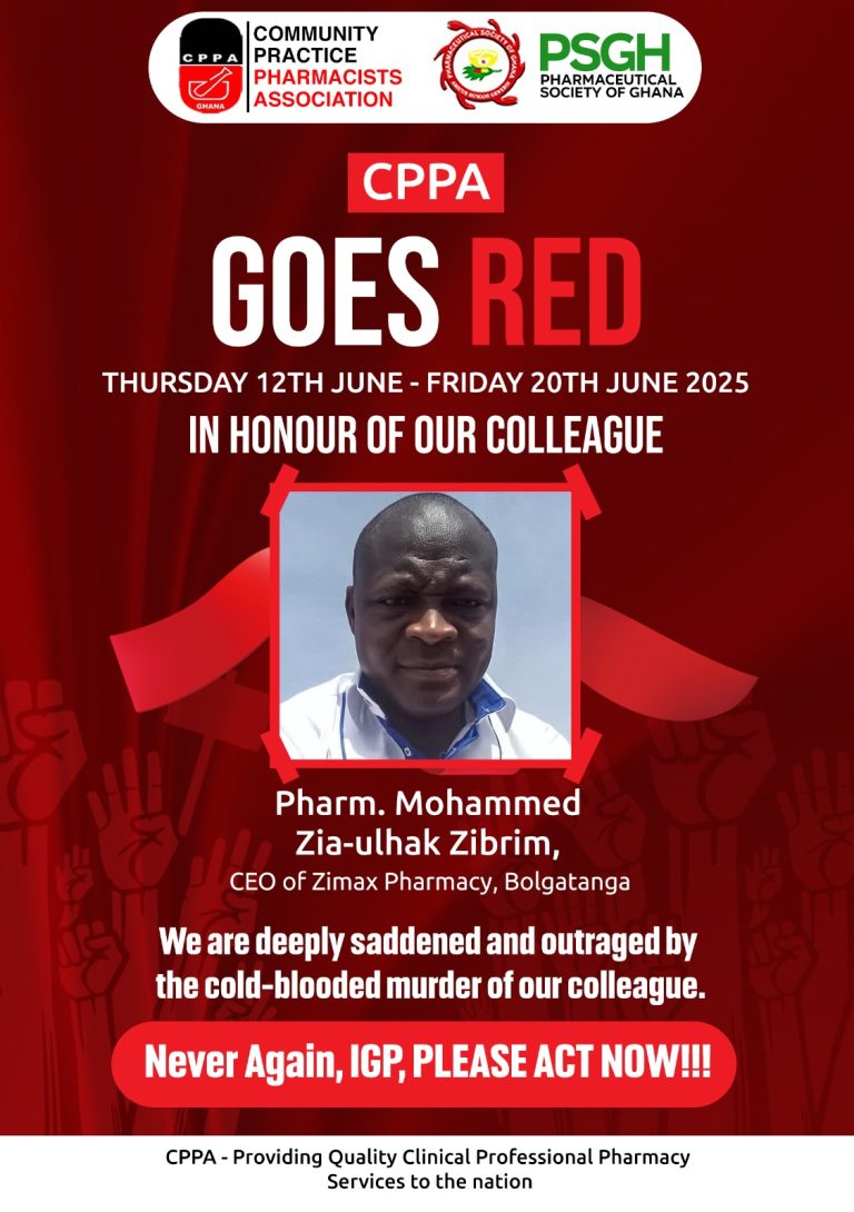 The Community Practice Pharmacists Association (CPPA) has condemned the murder of the Chief Executive Officer of Zimax Pharmacy, Mohammed Zia-UlHak Zibrim, who was shot dead in his vehicle on the evening of Thursday, June 5, 2025, outside his residence in Bolgatanga after returning from work.