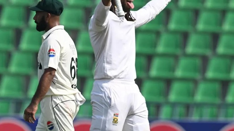 When the Proteas came out to field, Aiden Markram followed the Pakistan recipe by tossing the new-ball to Simon Harmer and the off-spinner immediately repaid his captain’s faith by luring Imam-ul-Haq out his crease to be stumped first ball for a duck.